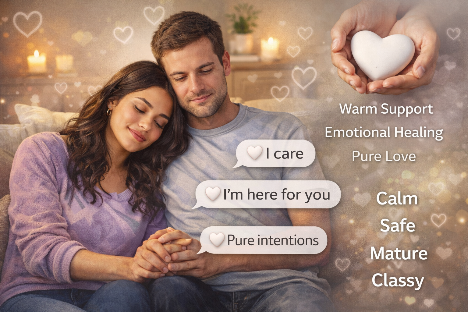 | Friend texts “Proud of you 🤍” | Support and warm care | Safe and encouraging | “That means a lot 🤍” |